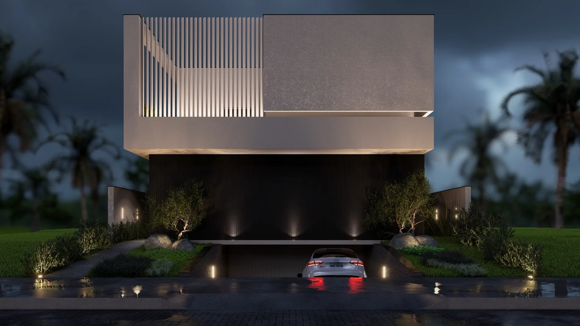 Inspirado na simbologia da contabilidade, o conceito desta residência parte do elemento Elmo — símbolo de proteção e pensamento elevado. A arquitetura traduz essa essência por meio de uma composição que equilibra racionalidade, introspecção e refúgio. Os volumes marcantes, a paleta neutra e a precisão formal refletem um olhar estratégico sobre o morar, com escolhas pautadas pela sobriedade, privacidade e funcionalidade.