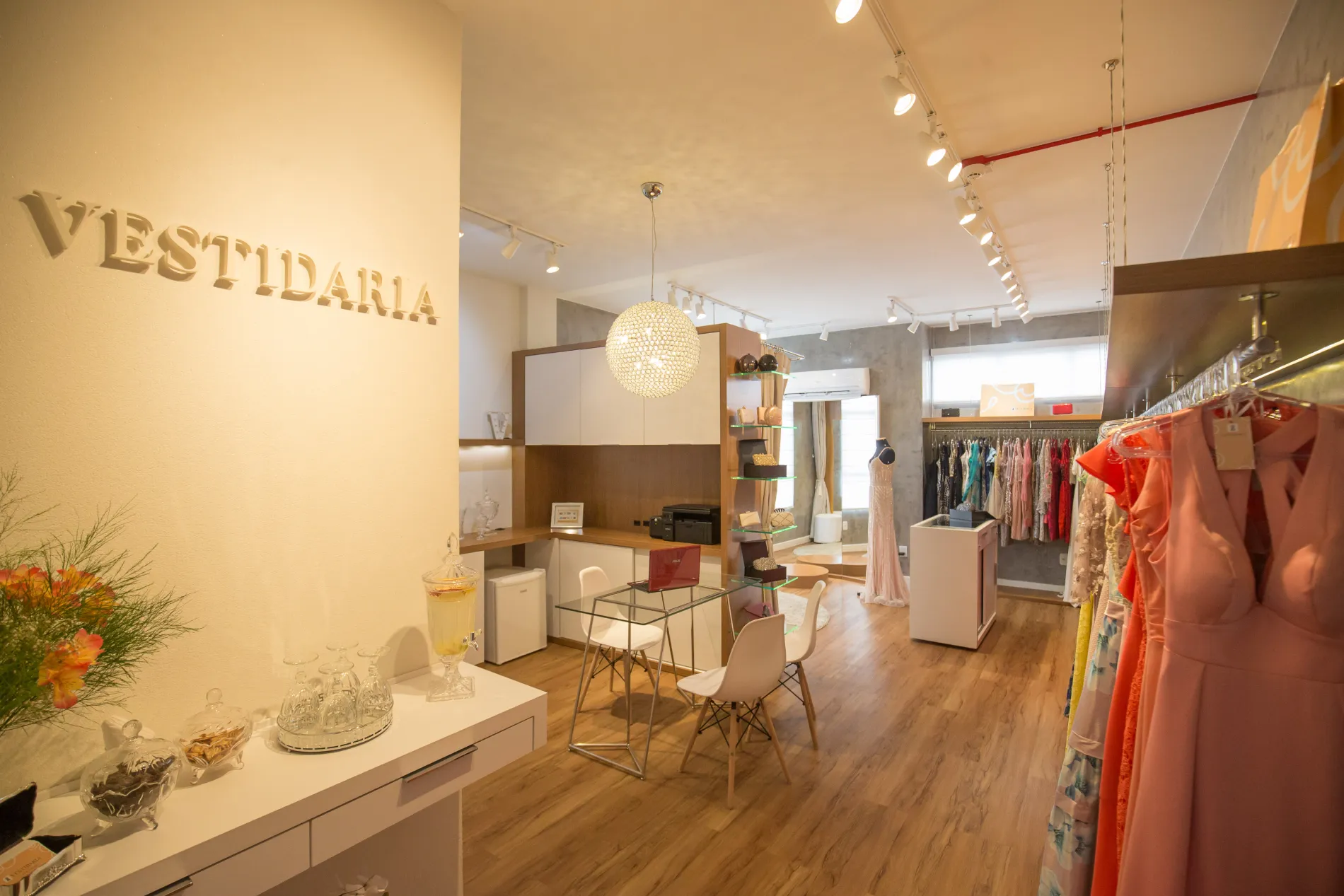 Com um conceito de grande closet aberto, a loja é um espaço onde a feminilidade, delicadeza e aconchego transbordam nos detalhes. A área da sala se divide em espaço de araras, mesa de trabalho e atendimento, provadores e provador com espelho 180o. Os provadores receberam tecidos off white, e presilhas permitem um detalhe especial para quando não estiverem em uso.